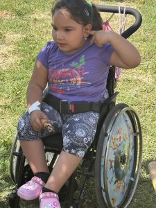 Jelenleg kerekesszékkel tud csak közlekedni, állni, járni, beszélni, nem tud.